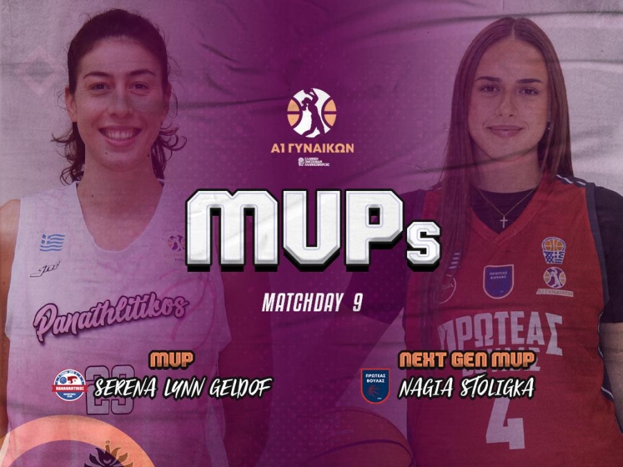 Πλούσιο θέαμα και πολλές συγκινήσεις πρόσφερε στους φιλάθλους η 9η Αγωνιστική του πρωταθλήματος της Α1 Γυναικών με τη Σερένα Γκέλντοφ να αναδεικνύεται MVP και τη Νάγια Στολίγκα να κερδίζει την διάκριση της MVP next gen.